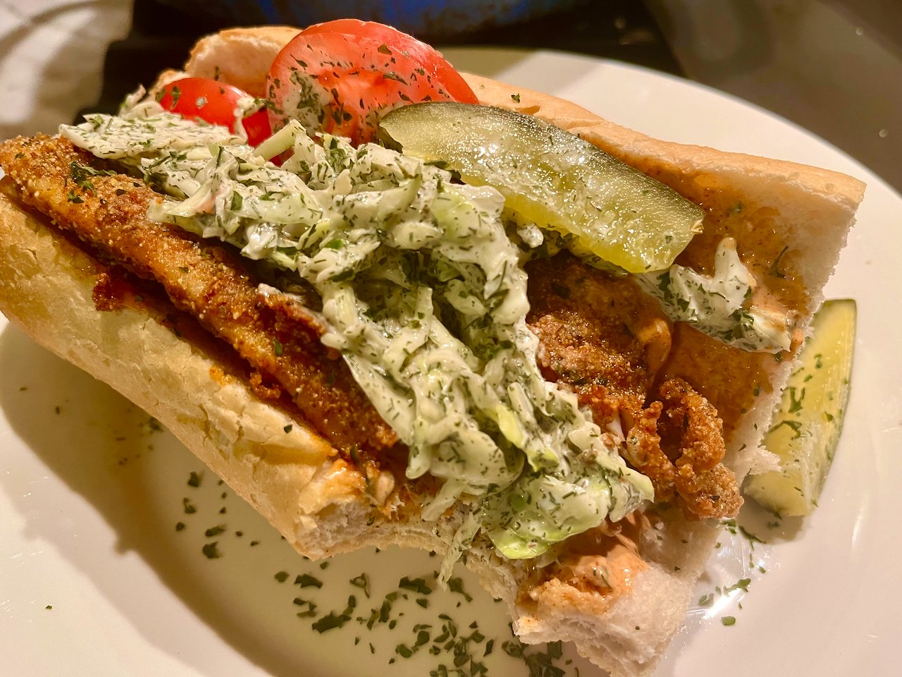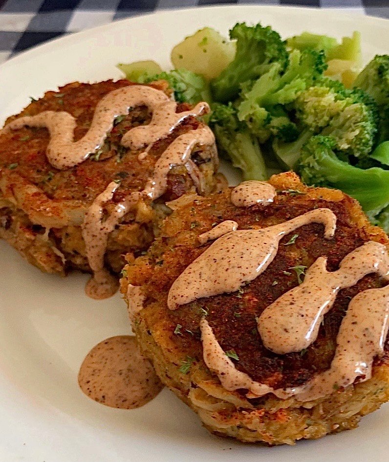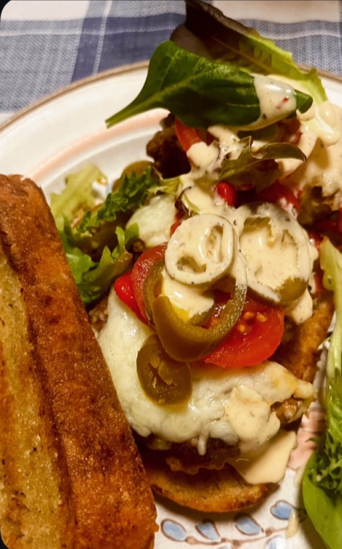 Crunchy Crouton Burger with Alabama White BBQ Sauce
