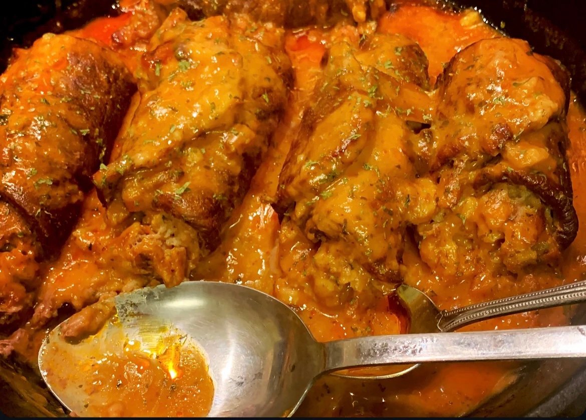 Stuffed Steak Rolls in Golden Tomato Gravy