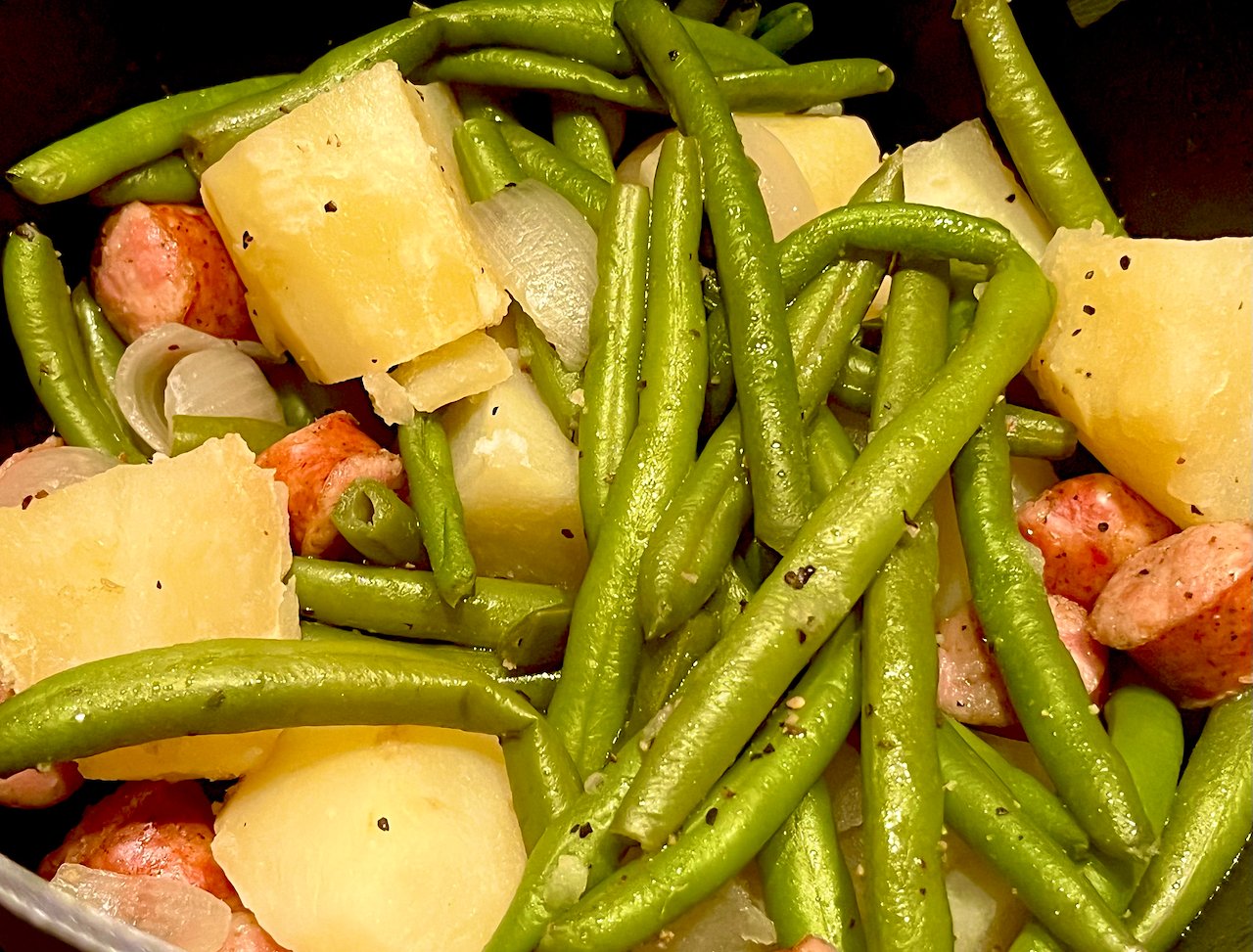 String Beans with Potatoes, Onions and Conecuh Sausage