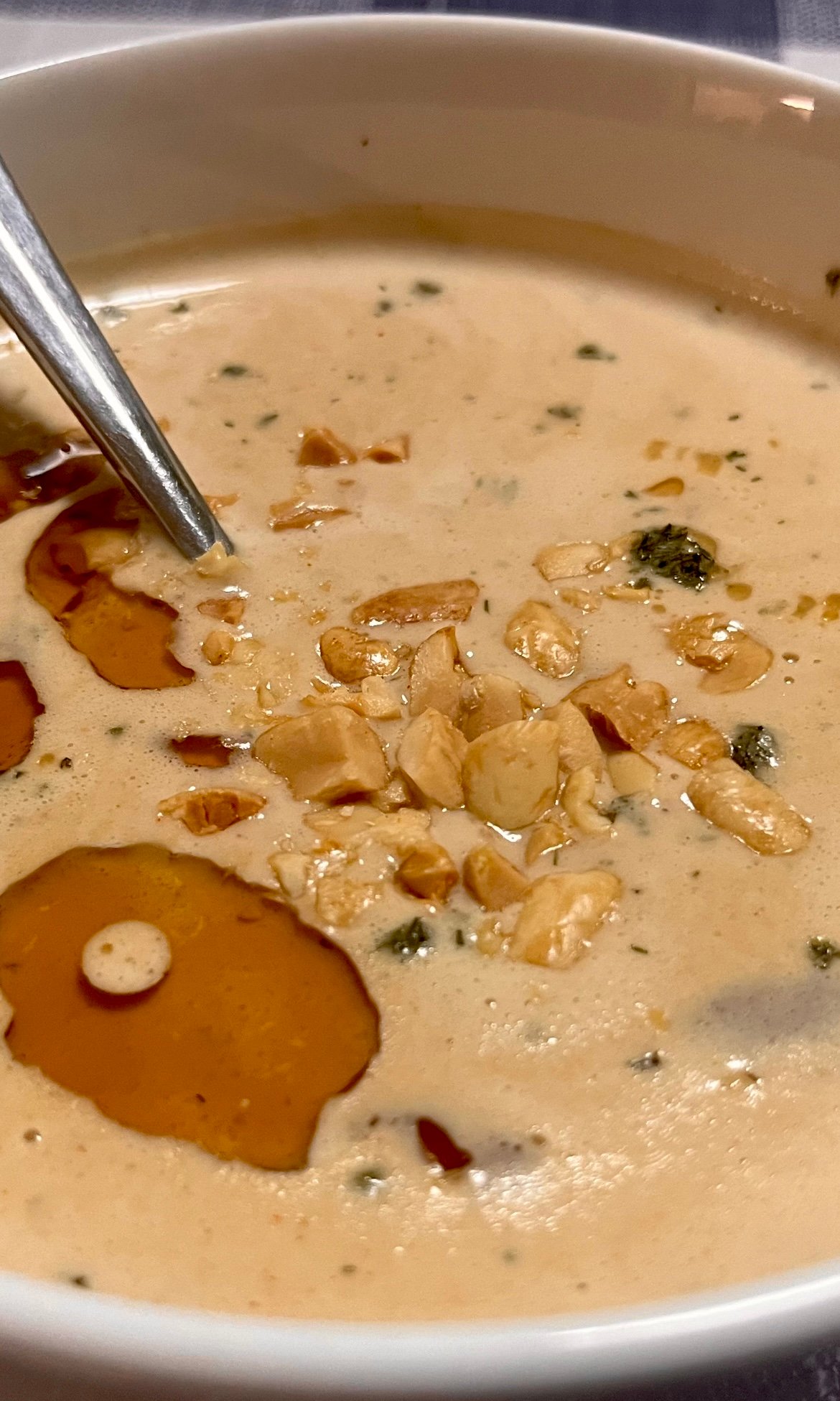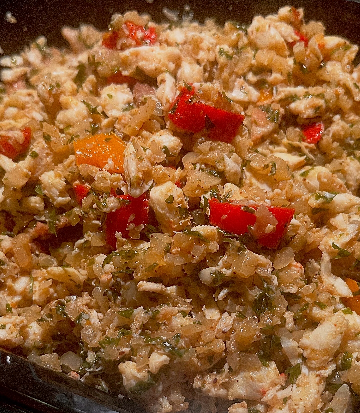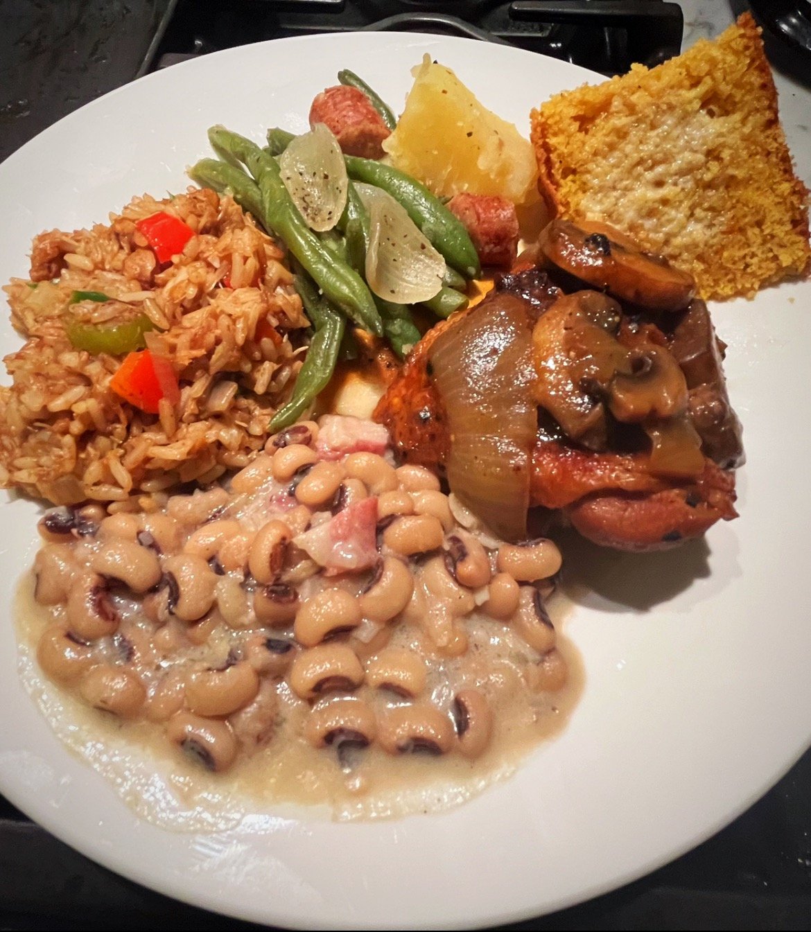Stewed Black-Eyed Peas in Coconut Milk with Slab Bacon and Vidalia Onions