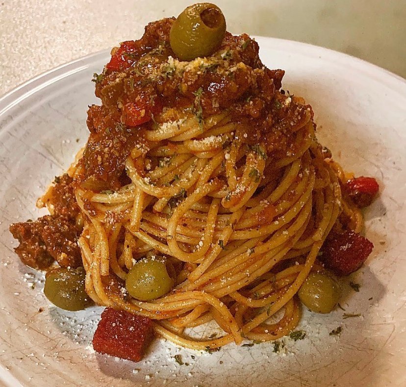 Tara’s Soulful Spaghetti (Meat sauce with Ground Beef, Andouille and Ham)