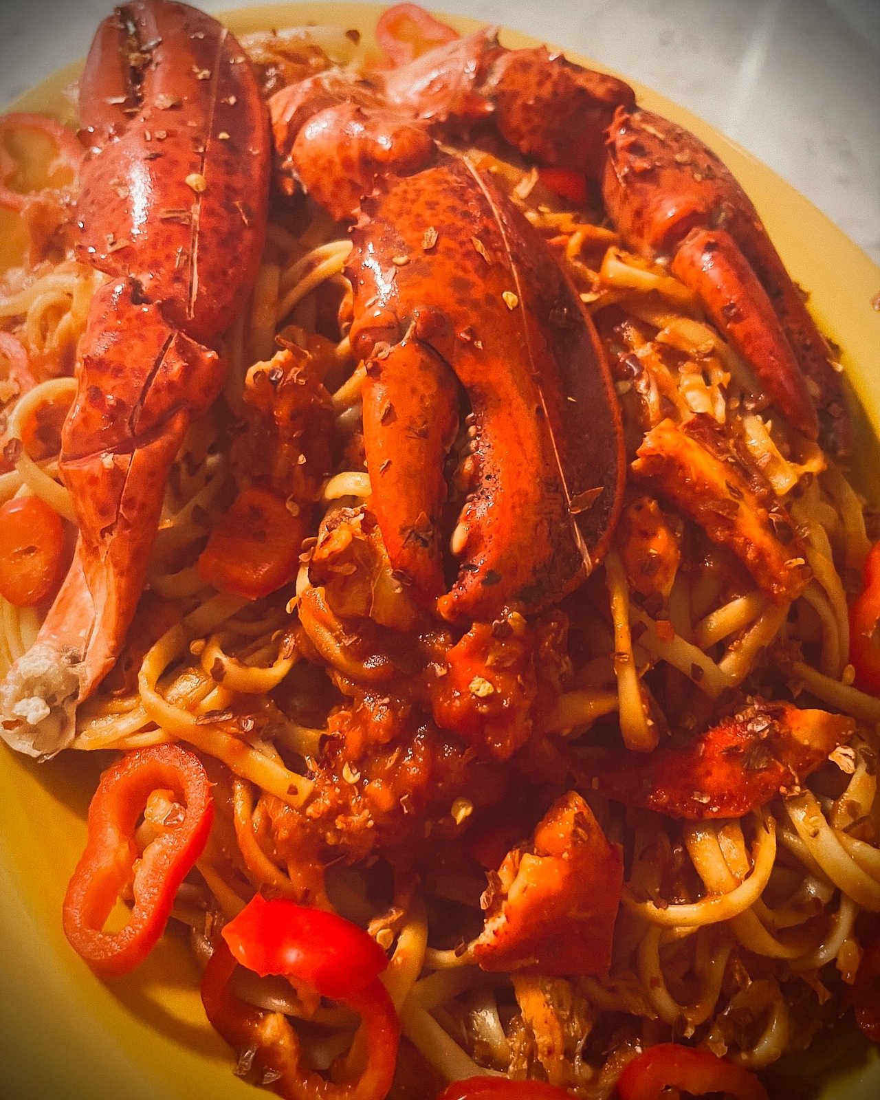 The fiery allure of peri-peri meets the ocean's opulence in a dish that is both indulgent and invigorating. This is peri-peri lobster linguine in spicy tomato sauce with fresh chilis—a culinary adventure that beckons to the epicurean in all of us.
