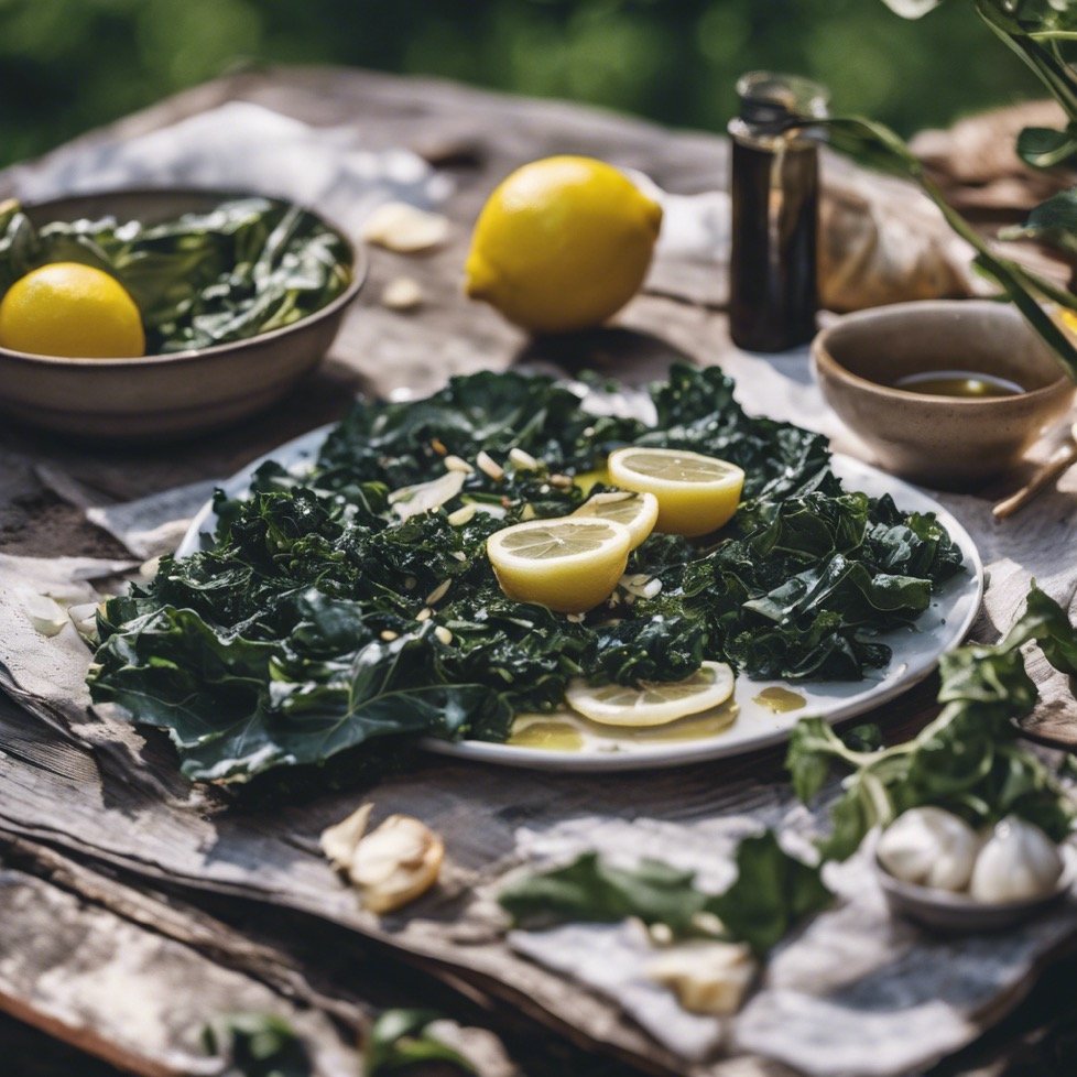 Lemon, Garlic and Walnut Oil Marinated Collard Greens