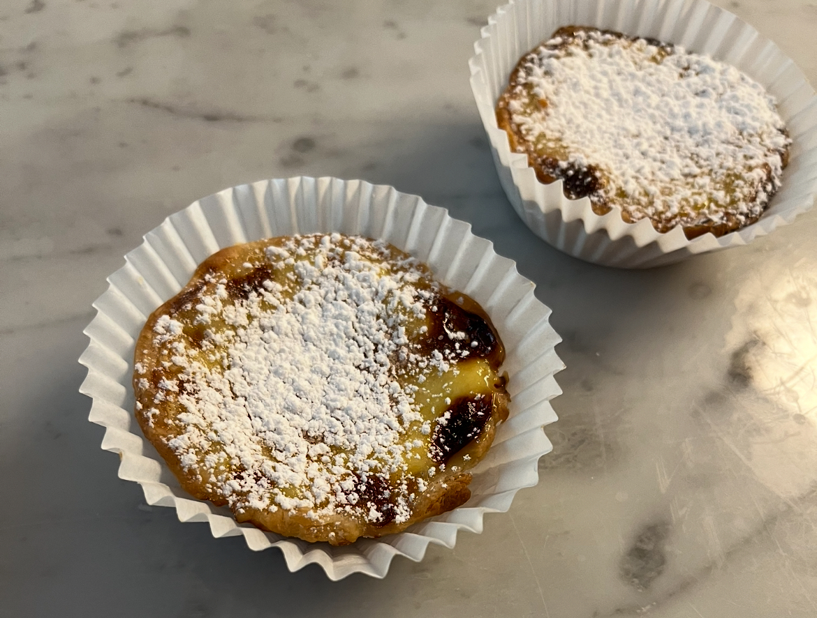 Our wonderful clients, a well-traveled couple, returned from Portugal and graciously shared with us this delightful photo of Russ indulging in our freshly-baked pastel de nata.