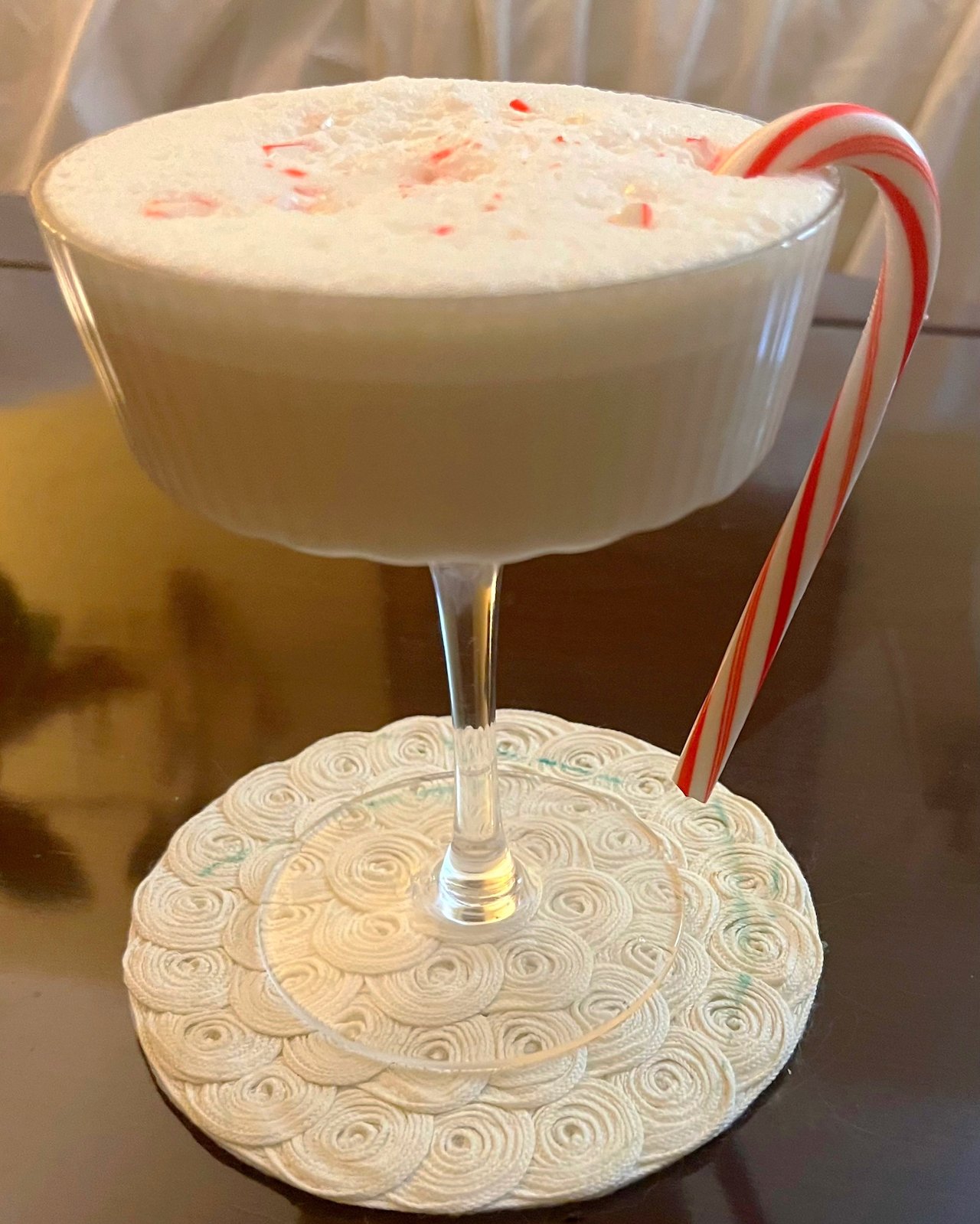 My grandmother always made me a crushed peppermint candy cake for my birthday when I was a child—and this creamy, cool cocktail is reminiscent of that treasured cake and nana.