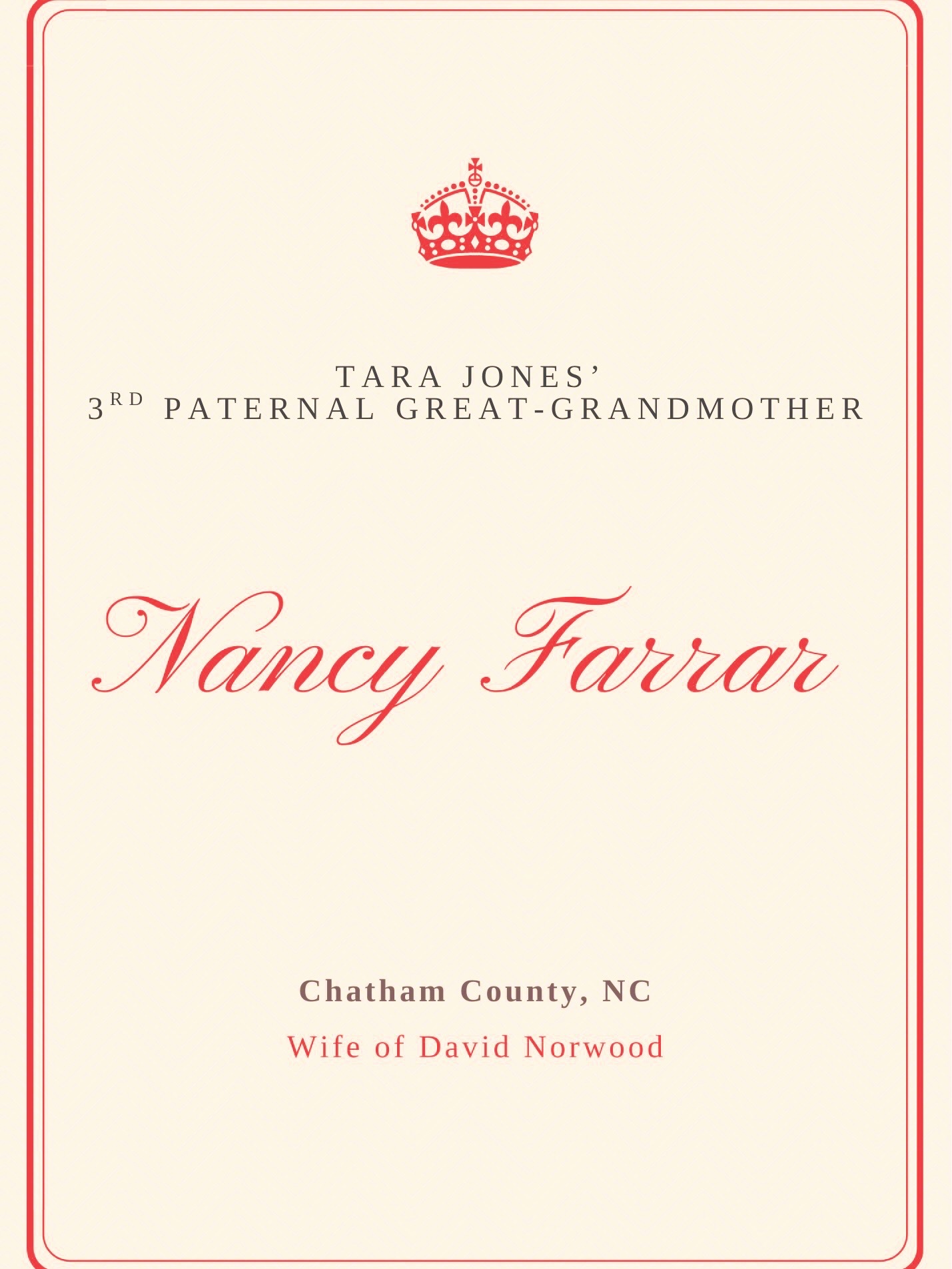 My 3rd paternal great-grandparents (standing), David Norwood and Nancy Farrar; she of the French Dr. Rene LaForce and American settler William Farrar (My distant paternal great-grandfather) bloodlines, and both direct descendants of King Edward I and Queen Eleanor of Castile, Spain—with Nancy's parents (seated), Reverend Thomas B. Farrar (son of Trephenah LaForce and Peter Farrar) and Alcy Ann Edwards, of Chatham County, North Carolina.