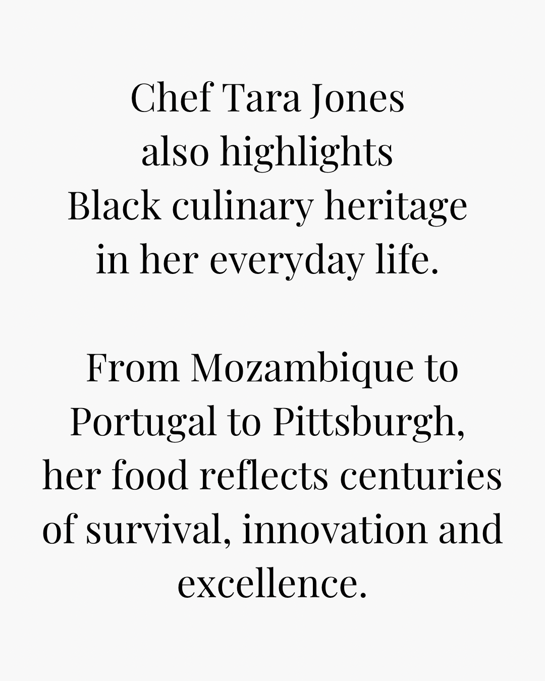 My culinary approach draws from Southern tradition and the Mozambican, Portuguese and other vibrant lineage that has shaped global gastronomy for centuries.