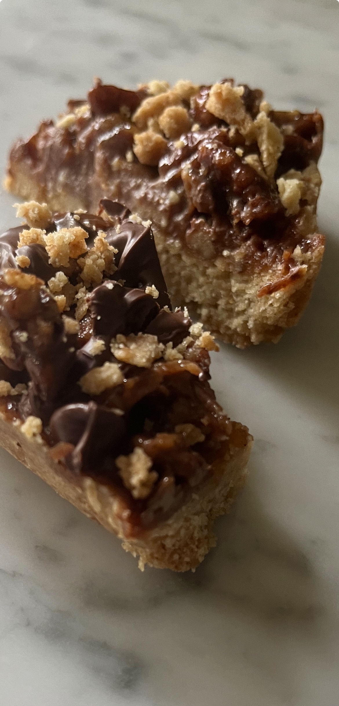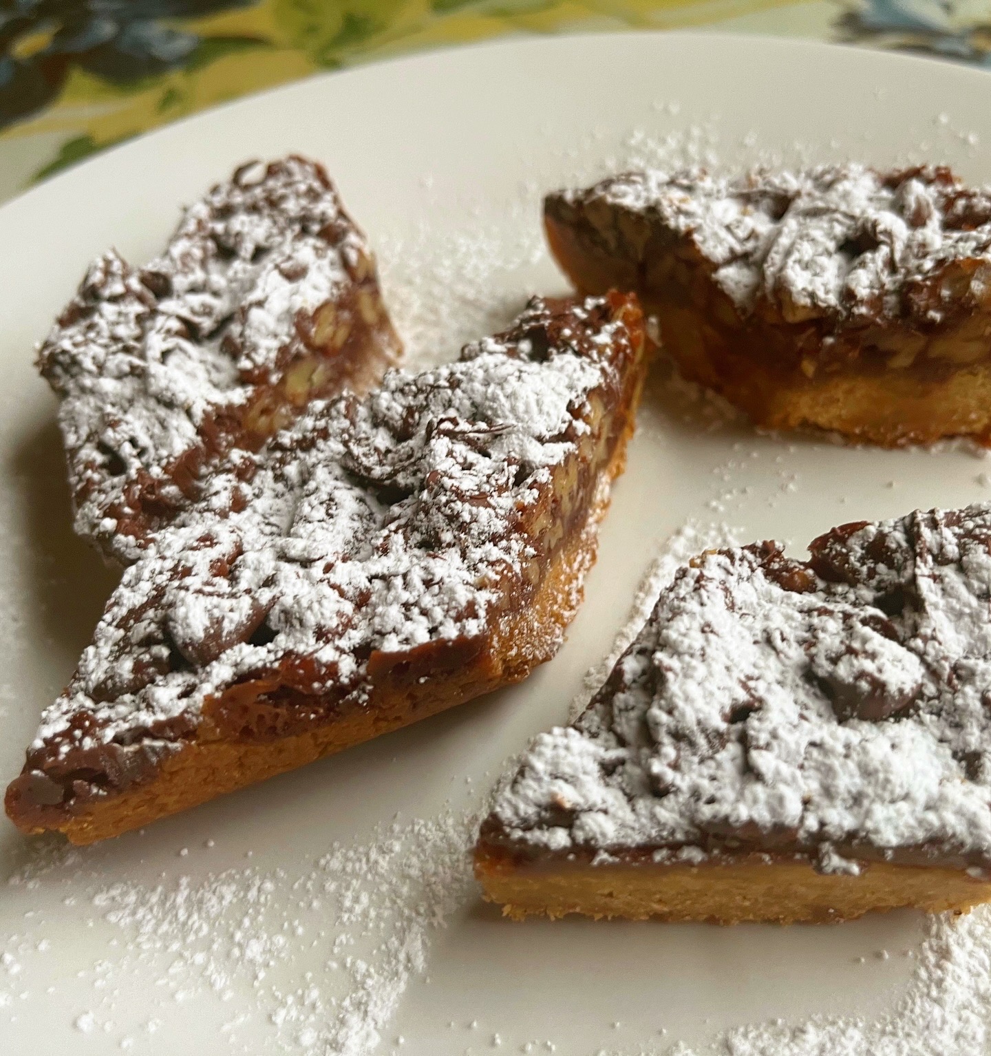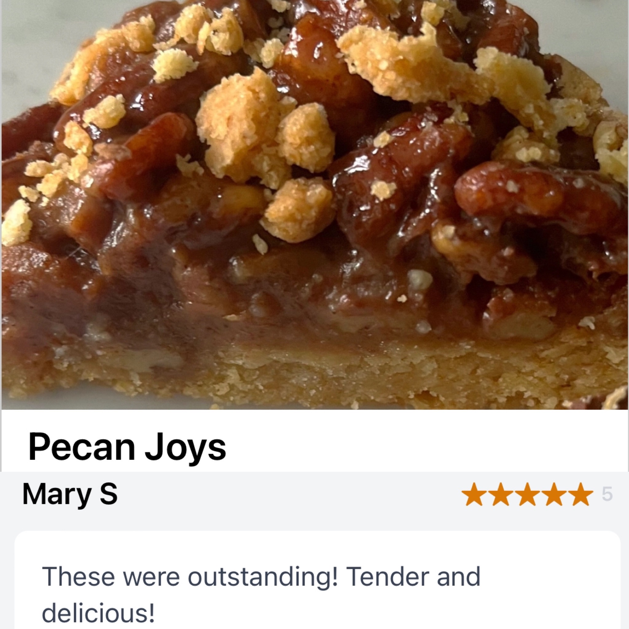 Our Pecan Joys are snappy butter cookies loaded with pecans, honey, sometimes chocolate and cinnamon-reminiscent of a chocolate pecan pie or even a Southern-style baklava—but in a cookie.