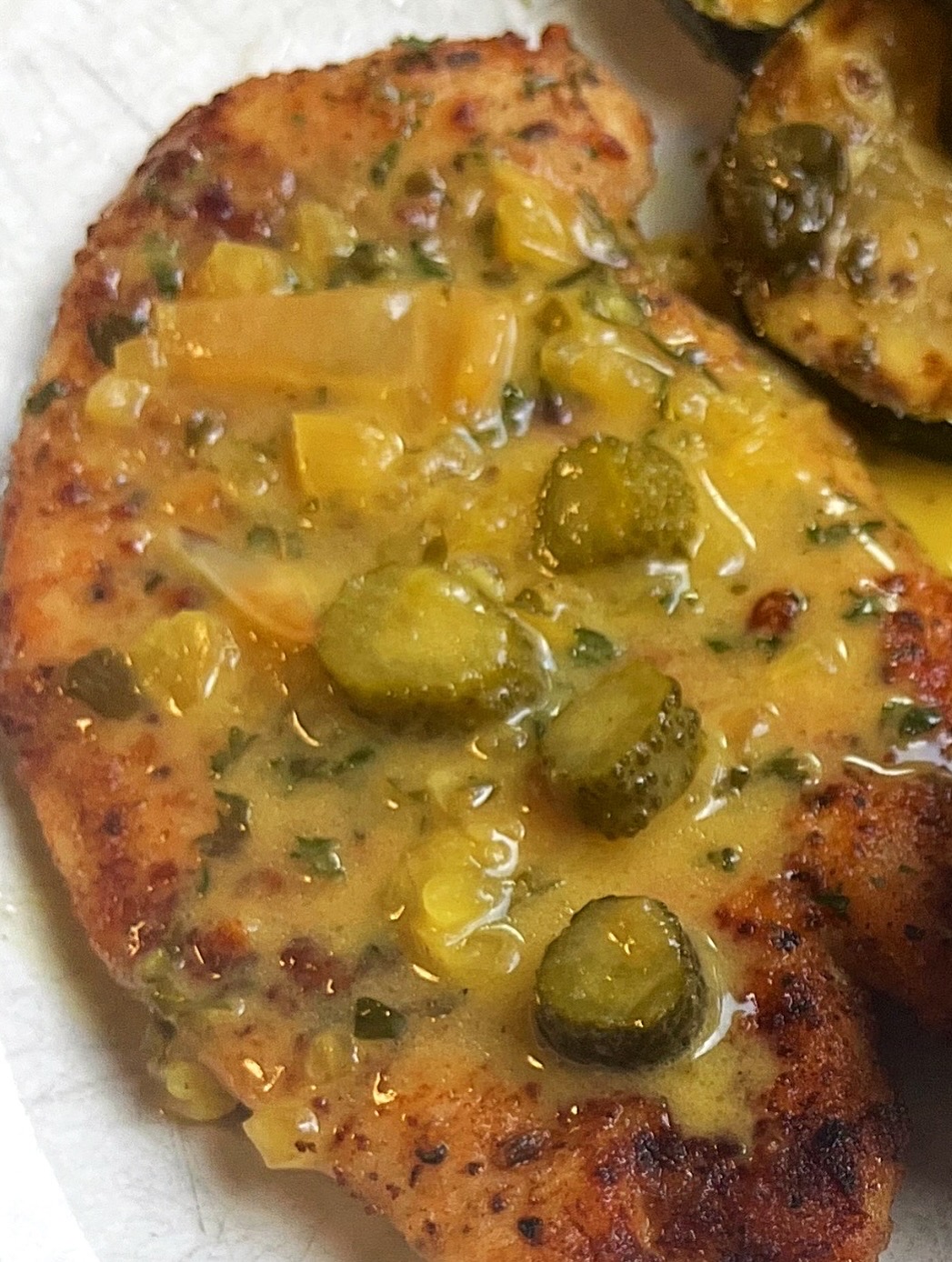 The recipe for this fresh, lemony, pleasantly pickly chicken is in my digital cookbook!